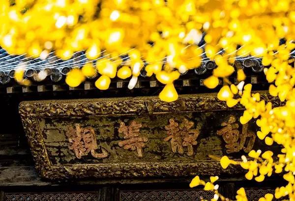 城外的银杏落叶待尽,